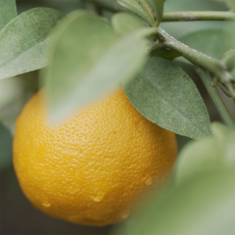 The yuzu in Yueyang, Hunan, are filled with a unique, intoxicating fragrance. Rooted in fertile soil at 29° North Latitude, the yuzu absorb richer aromas as they ripen. We let each fruit turn yellow naturally on the branch, allowing the oil glands on their peels to brim with the nourishment of sunlight.